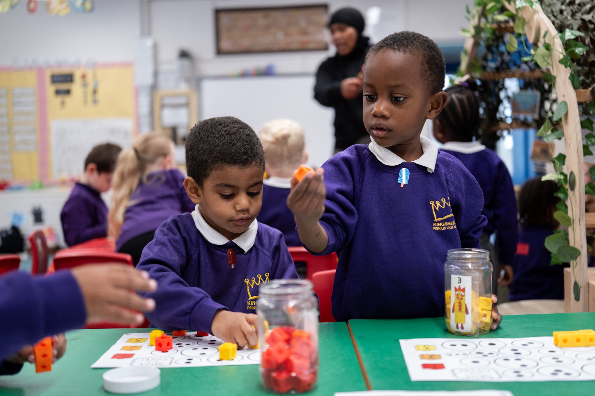 At Kingsmead, we aim to develop confident mathematicians who love their learning and build resilience and stamina when faced with a problem. We develop children’s fluency of core place value knowledge and arithmetic skills, whilst ensuring that all children have developed conceptual understanding of number. Our aim is for every child to be equipped with core mathematical skills that are transferable to the world around them. We provide pupils from EYFS through to the end of Key Stage 2 with extensive opportunities to apply their skills in a range of different contexts to help develop their reasoning skills and embed conceptual understanding. We encourage children to be reflective about their learning through self and peer assessment and to approach mistakes as opportunities for learning. This helps builds children’s resilience and supports children in approaching challenges with motivation and without the fear of failure. Our aim is for children to leave Key Stage 2 as confident mathematicians, equipped to be successful, as they move on to secondary school.