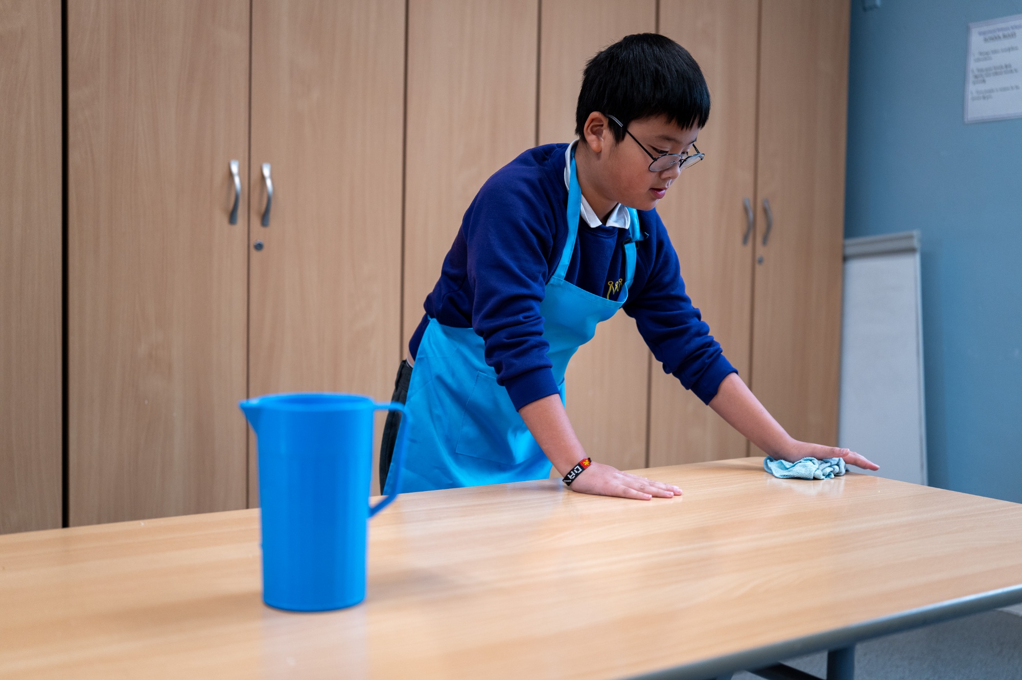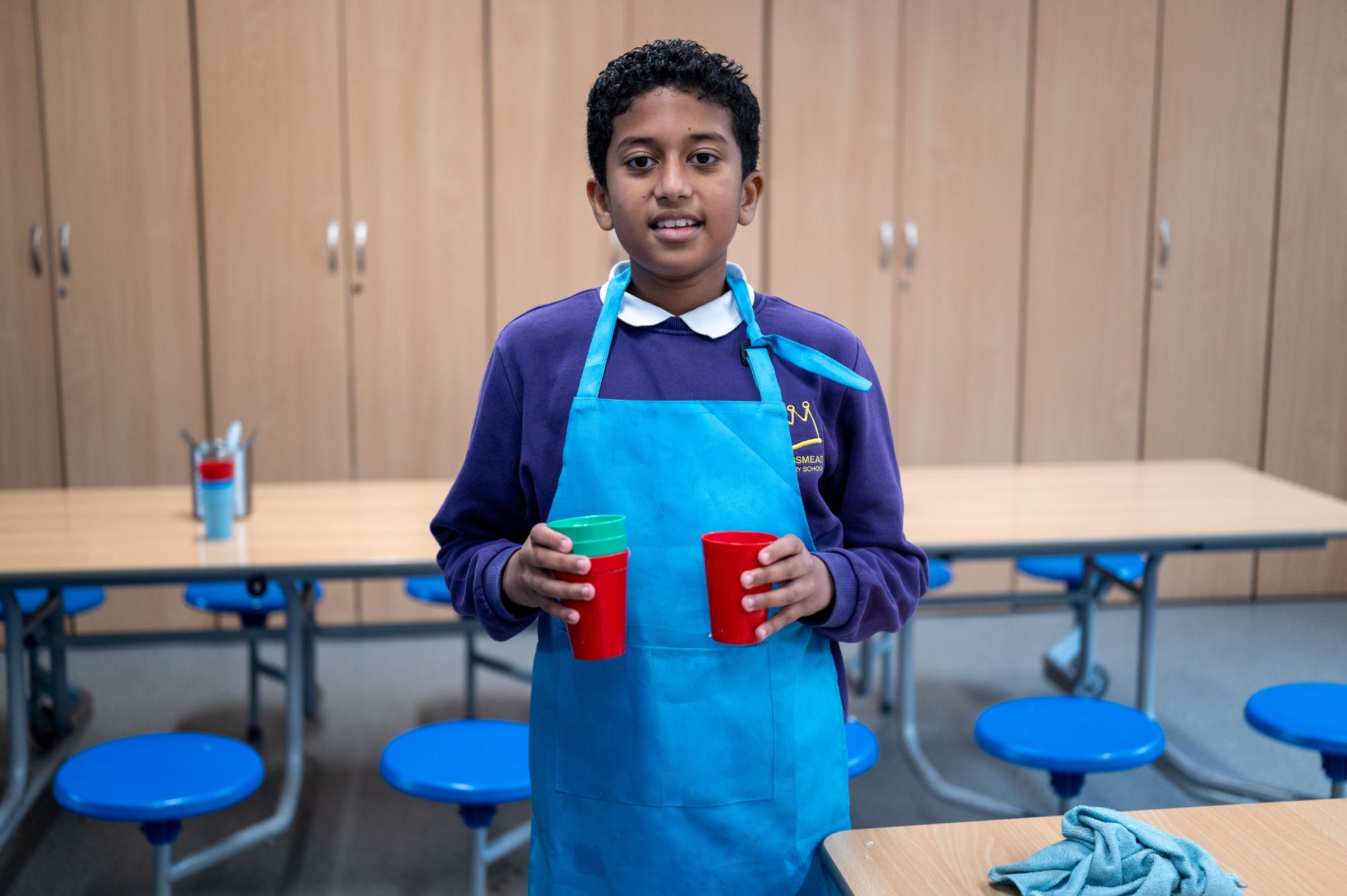 Children from Years 4 & 5 can volunteer to be Lunchtime Helpers. The Lunchtime Helpers' key role is to ensure a calm and happy dining hall at lunchtime. They support younger children, clean dining tables, sweep the floor and ensure the cutlery containers and water jugs are full.