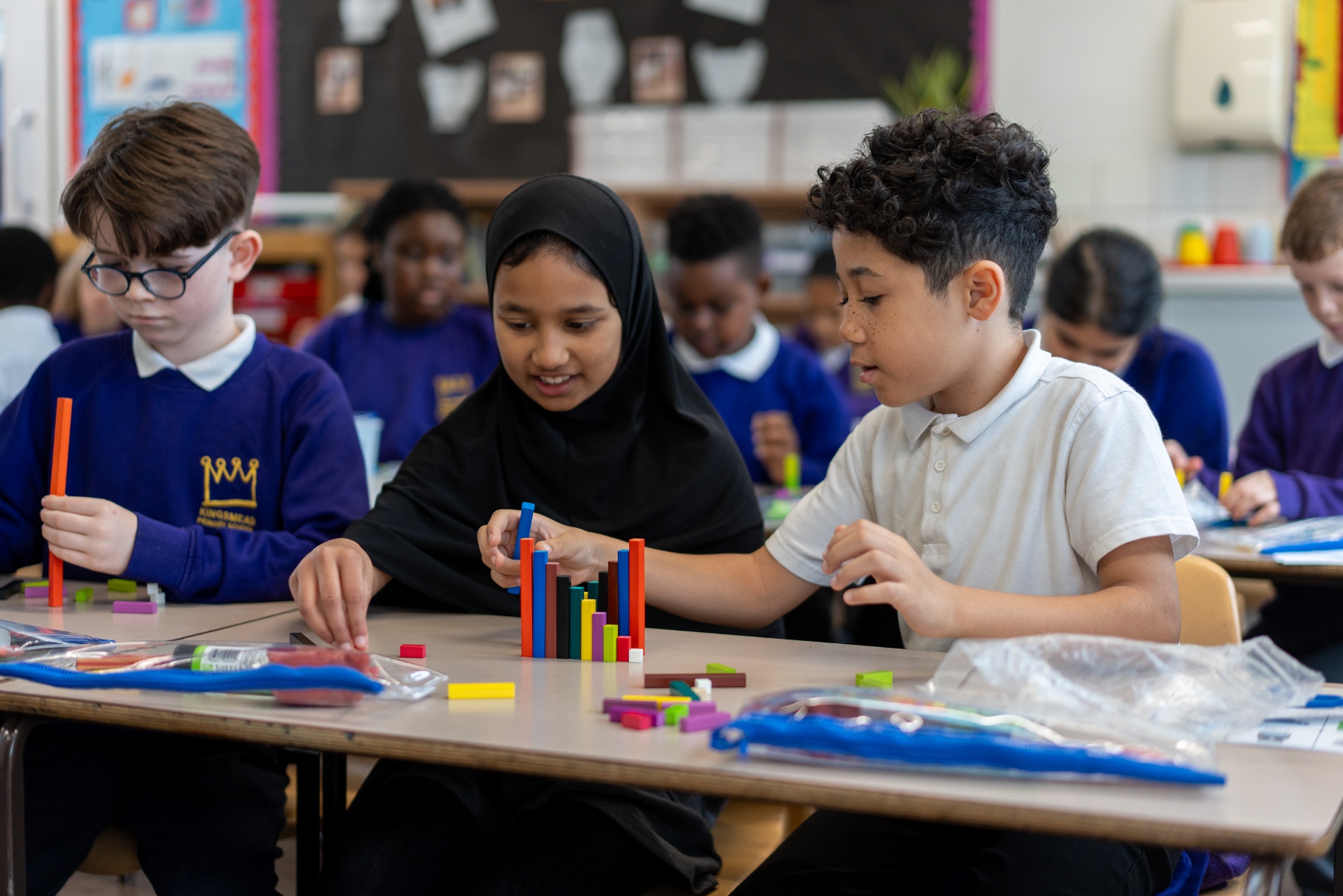 At Kingsmead, we aim to develop confident mathematicians who love their learning and build resilience and stamina when faced with a problem. We develop children’s fluency of core place value knowledge and arithmetic skills, whilst ensuring that all children have developed conceptual understanding of number. Our aim is for every child to be equipped with core mathematical skills that are transferable to the world around them. We provide pupils from EYFS through to the end of Key Stage 2 with extensive opportunities to apply their skills in a range of different contexts to help develop their reasoning skills and embed conceptual understanding. We encourage children to be reflective about their learning through self and peer assessment and to approach mistakes as opportunities for learning. This helps builds children’s resilience and supports children in approaching challenges with motivation and without the fear of failure. Our aim is for children to leave Key Stage 2 as confident mathematicians, equipped to be successful, as they move on to secondary school.