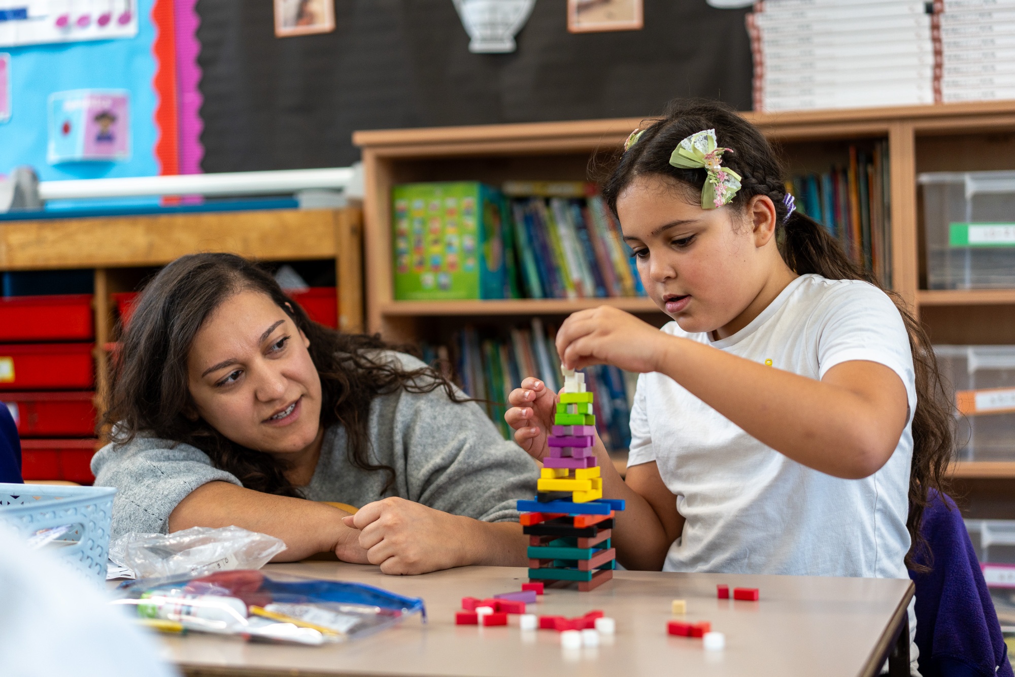Children continue to have a variety of concrete apparatus to support their understanding of addition, subtraction, multiplication and division, including dienes, counters, straws, unifix cubes, counting beans, Rekenreks and Numicon.