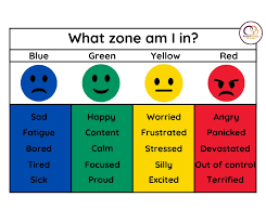 Zones of Regulation is a conceptual framework used to teach pupils self-regulation. This involves responding to feelings and what is going on, in a socially appropriate way.