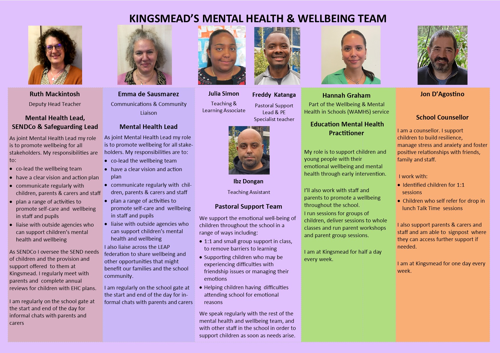 At Kingsmead our Wellbeing and Mental Health team are: